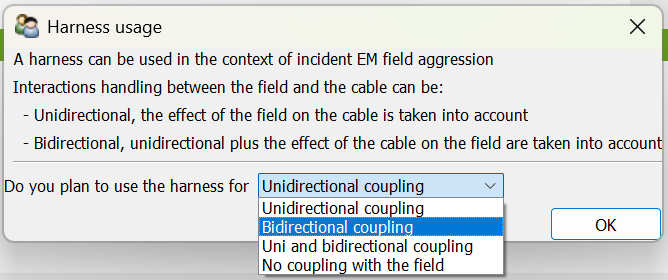 When creating a cable harness in Cablesim, the user can choose the type of interaction between the field and the cable bundle
